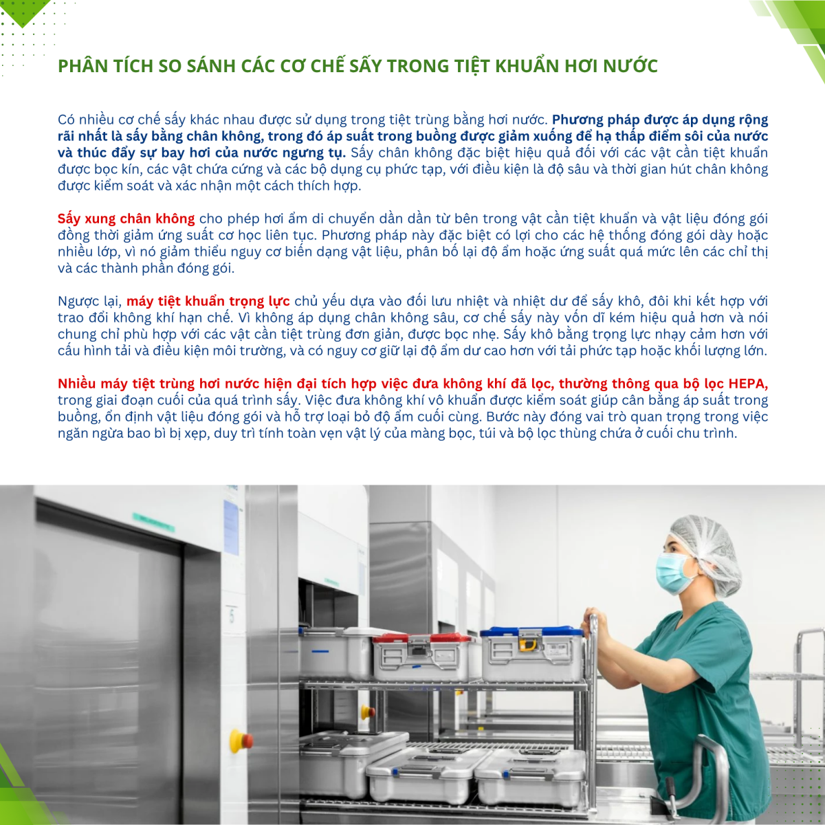 Giai đoạn SẤY đóng vai trò quan trọng như thế nào trong tiệt khuẩn hơi nước?