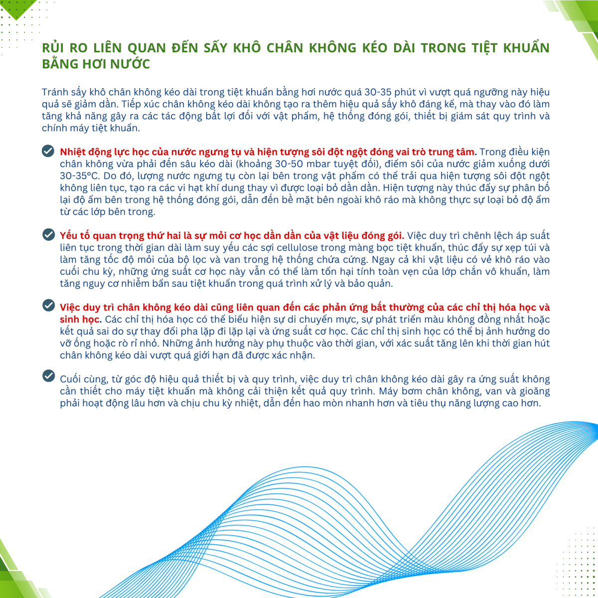 Trong tiệt khuẩn hơi nước, sấy không chỉ là bước cuối – mà là điều kiện để duy trì trạng thái vô khuẩn sau chu trình.