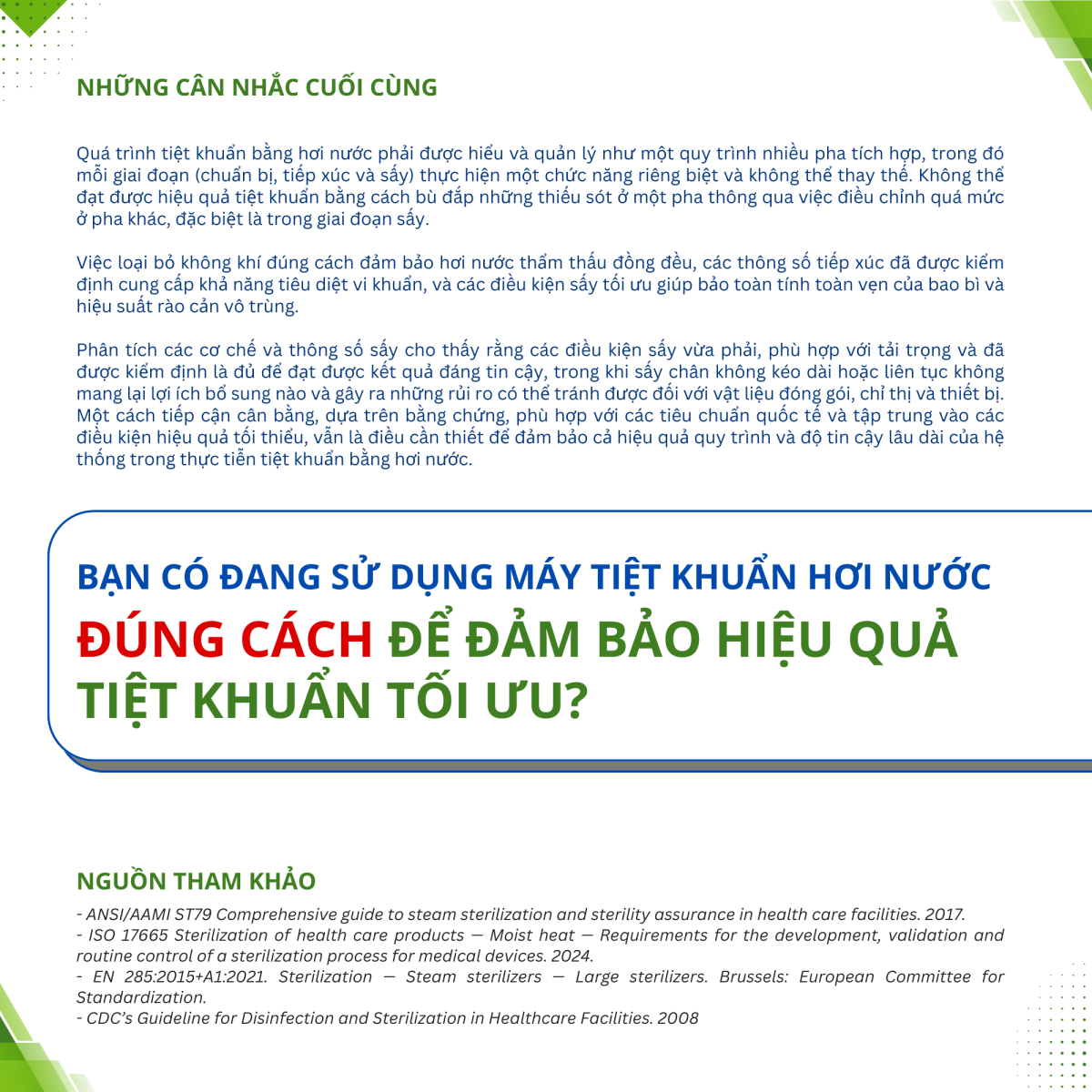 Để hiểu rõ hơn Giai đoạn Sấy có tác động như thế nào đến quá trình tiệt khuẩn hơi nước. Kính mời quý anh chị xem bài trình bày phía dưới: Nội dung tham khảo từ bài trình bày của Tiến sĩ Alien Arias Barreto - Trưởng bộ phân Dịch vụ Sản Phẩm, Terragene. ⚠️ THEO TIÊU CHUẨN QUỐC TẾ (ISO 17665 / EN 285 / AAMI ST79, CDC Hoa Kỳ 2008)