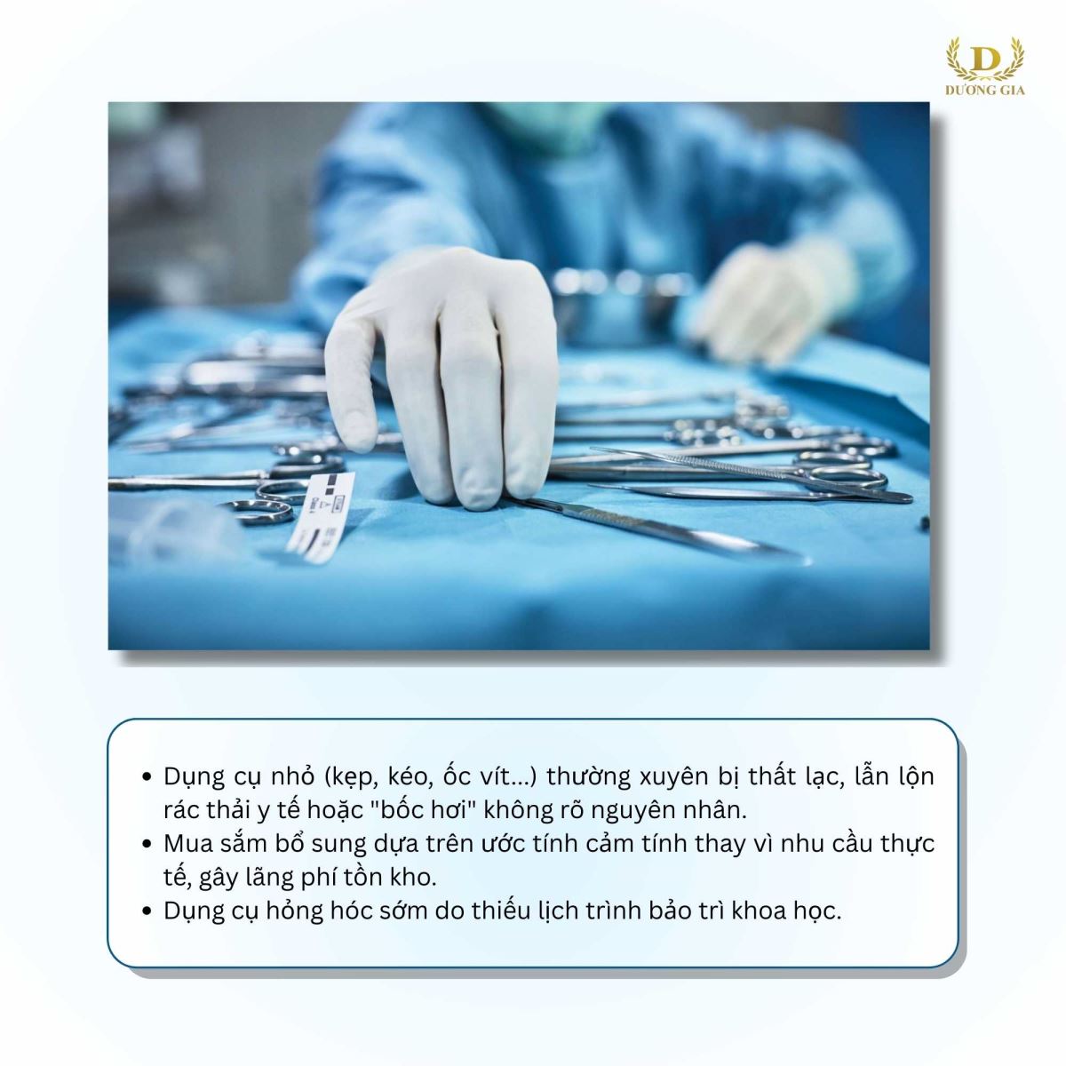 ▪️ Dụng cụ nhỏ (kẹp, kéo, ốc vít…) dễ thất lạc, lẫn trong rác thải y tế hoặc mất không rõ nguyên nhân.