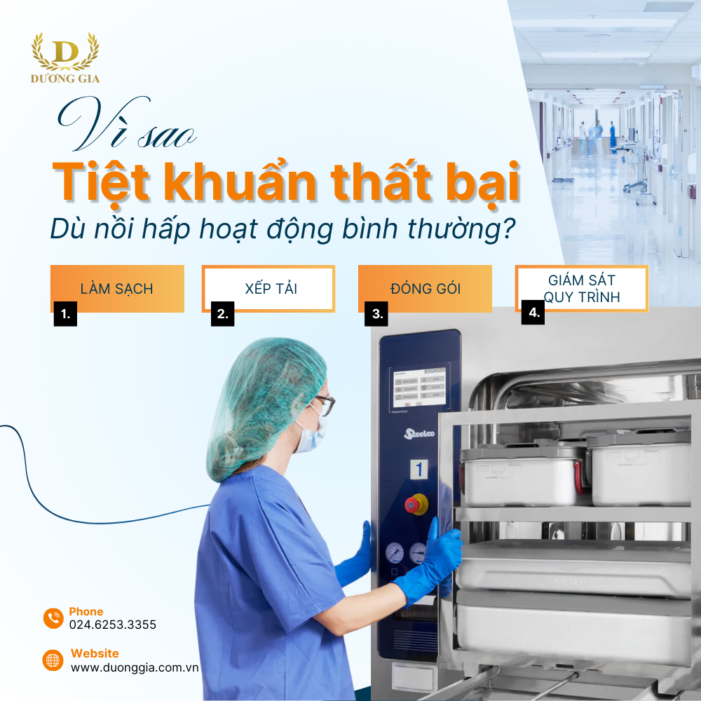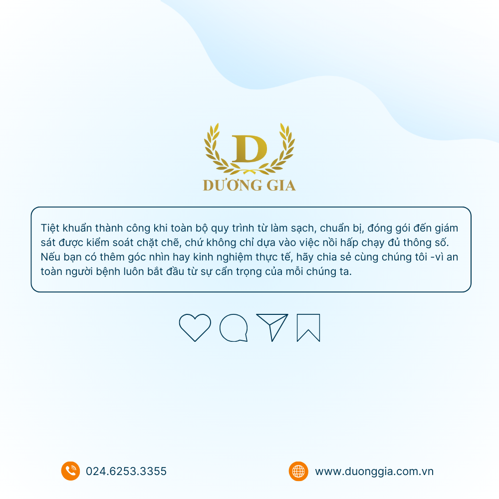 Tiệt khuẩn thành công khi toàn bộ quy trình từ làm sạch, chuẩn bị, đóng gói đến giám sát được kiểm soát chặt chẽ, chứ không chỉ dựa vào việc nồi hấp chạy đủ thông số.